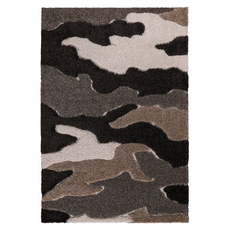 Modern hoogpolig vloerkleed Lima bruin beige zwart